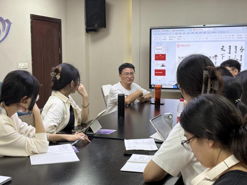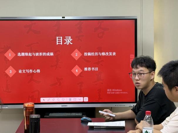 分享环节中,孙绍文以《组织理论:理性、自然与开放系统的视角》为切入点,结合自身研究经历,系统讲解如何将经典理论转化为具体研究思路与写作框架。他围绕“从理论脉络挖议题”展开,详细分享了从组织理论中提炼跨部门协作、治理机制等研究方向的方法,以及如何以小切口问题为起点,逐步延伸至国家治理实践层面的研究心得。此外,他还结合投稿修改的经历,拆解了如何在反复打磨中深化文章的理论价值、强化政策启示性,为同学们规避写作误区、提升成果质量提供了实用参考。