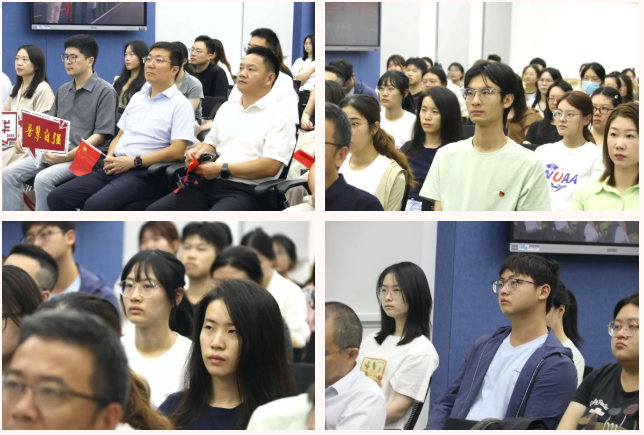 随后,两校区师生党员、入党积极分子怀着崇敬与期待,共同观看纪念中国人民抗日战争暨世界反法西斯战争胜利80周年大会网络直播。当直播画面中的三军将士迈着整齐有力的步伐接受检阅,展现出强大的科技实力与国防力量时,现场气氛热烈,大家的目光紧紧锁定屏幕,仿佛与80年前浴血奋战的先烈们进行了一场跨越时空的精神对话。员工党员们纷纷表示,要把从阅兵中感受到的爱国热情转化为实际行动,在学业上刻苦钻研,以青春之我助力民族复兴。