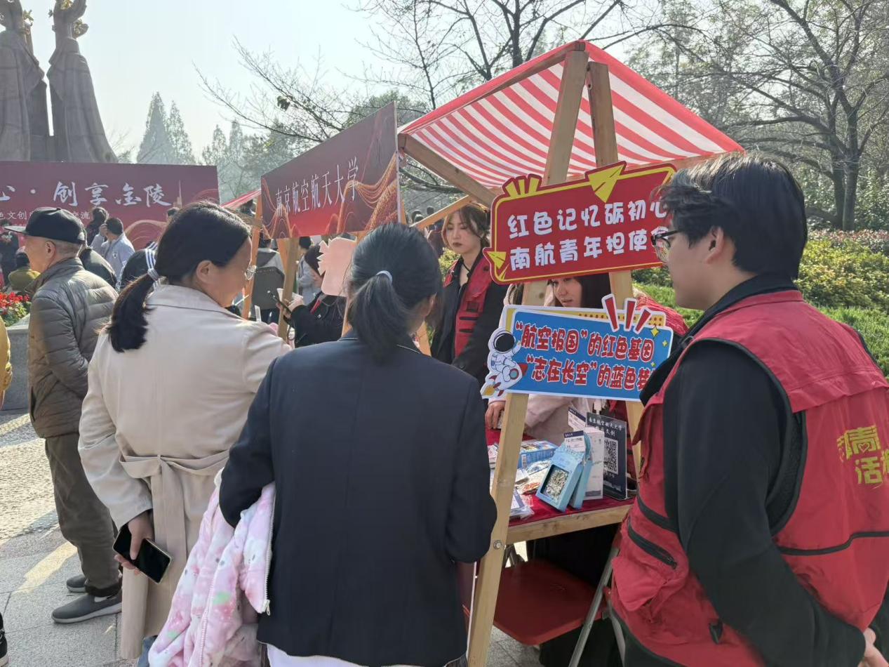 活动现场,我校展位前人头攒动、气氛热烈。“诞生于抗美援朝烽火之中的南航,与身俱来就怀揣着‘航空报国’的红色基因和‘志在长空’的蓝色梦想,肩负着航空强国、服务国防的使命担当为共和国贡献了若干个‘第一’……”,在我校展位点上,工作室成员结合红色教育与学科学校特色,将展品背后的科研故事、爱国事迹娓娓道来。展位吸引了众多大中小员工、市民游客驻足聆听、参观打卡,南航的艰苦创业故事与雨花台的红色背景交相辉映,也让众人的家国情怀在追寻革命英烈的信仰之旅中深深扎根。期间,江苏电视台对我校参展情况及特色展品进行了专题采访。