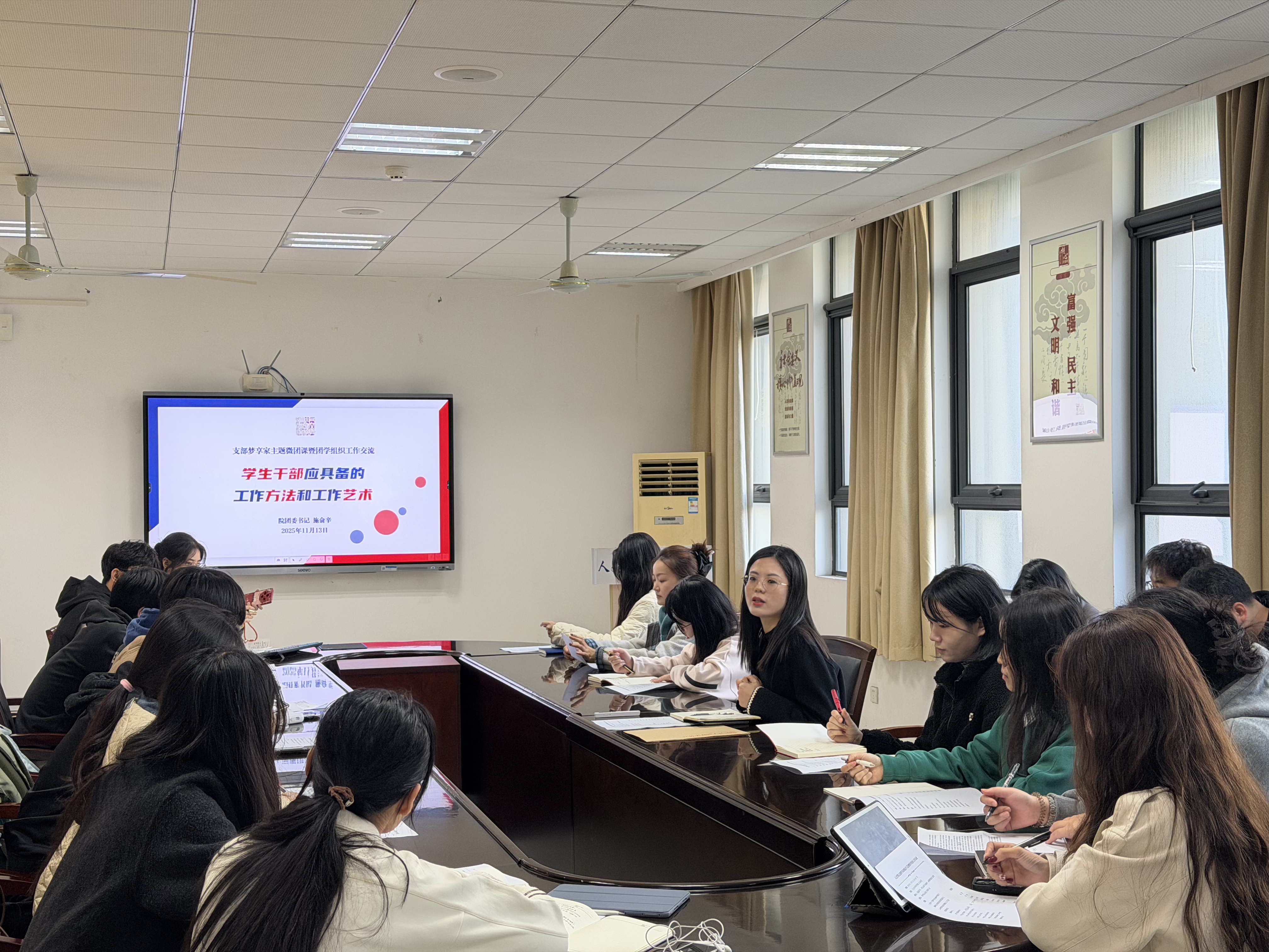 最后,施俞辛围绕“员工干部应具备的工作方法和工作艺术”开展主题微团课。她引用彼得·德鲁克的管理理念,通过“是什么、为什么、怎么样”三个核心问题,明确了员工干部的工作定位。针对工作落实,施俞辛分享了“三问工作法”和“四象限法则”,鼓励同学们以“干事创业”的热情投入工作。同时,她从反馈机制、流程优化等方面,为团学组织高效开展工作、对接资源提供了具体指导。