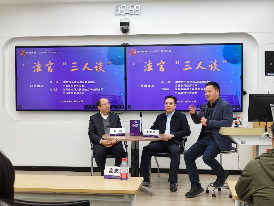 11月27日,伟德国际1946bv官网在院楼213教室举办职业规划“三人谈”品牌活动。全国审判业务专家、南通市中级人民法院副院长高鸿,全省审判业务专家、江苏省高级人民法院立案庭副庭长刘尚雷受邀到场,聚焦法官职业发展、基层法律工作实践等议题,为在场学子带来了一场兼具深度与温度的职业规划分享。本次活动由院长高志宏主持。