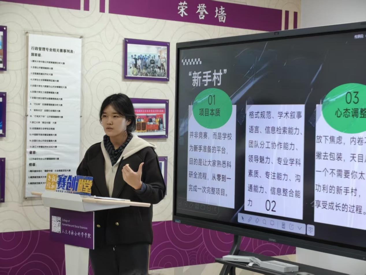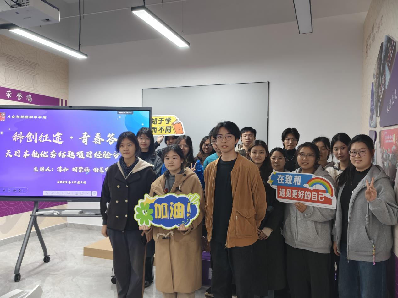 12月1日,“科创征途·青春答卷”天目启航优秀结题项目经验分享会如期举行。淳和、胡紫涵、谢晨睿三位优秀员工代表化身“科创引路人”,倾囊相授实战经验。淳和从流程把控入手,强调时间规划、主动沟通与团队协作的重要性,分享文献检索实用技巧;胡紫涵结合调研实践,提醒同学们重视前期积累与兴趣挖掘,鼓励深耕成果转化;谢晨睿从研究起点到结题答辩,剖析竞赛所需综合素养,寄语新生尽快熟练使用社科话语体系。现场氛围热烈,大一学子专注聆听,提问环节围绕时间管理、任务分配等困惑积极互动。
