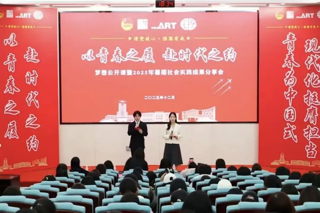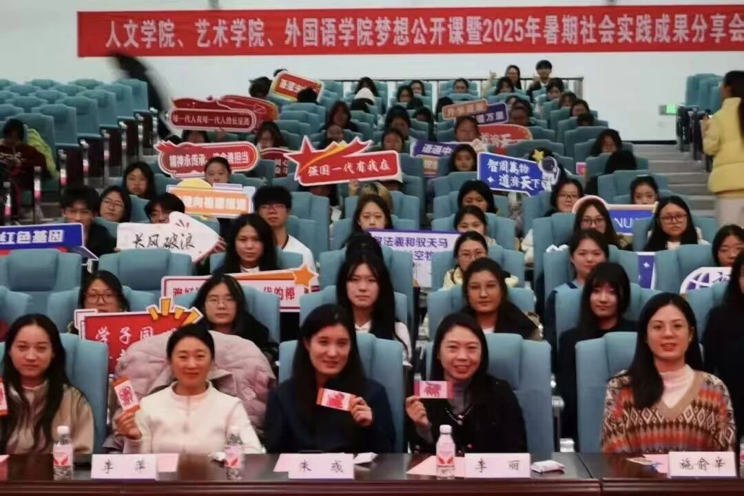 12月2日晚,由伟德国际1946bv官网、外国语伟德国际1946bv官网、艺术伟德国际1946bv官网联合承办的“以青春之履,赴时代之约”梦想公开课暨2025年暑期社会实践成果分享会在天目湖校区T2110隆重举行。伟德国际1946bv官网党委副书记李丽、校团委兼职副书记朱彧莅临指导,13支优秀实践团队作汇报分享,200余名师生到场聆听。