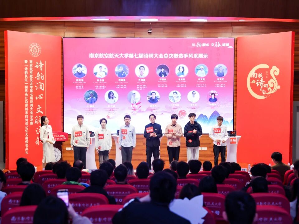近日,“诗韵润心·文脉远航”伟德国际1946bv官网第七届诗词大会总决赛暨“诗韵长江”探寻长江沿岸城市的诗词记忆大赛颁奖典礼在将军路校区举行。校党委书记甄良,校党委副书记、纪委书记杭育新,校党委副书记陶勇、刘宇雷,清华大学特聘教授、中国韵文学会会长、央视《中国诗词大会》总顾问钟振振,新华社江苏分社原副社长、全球汉诗总会副会长徐战前,南京大学文伟德国际1946bv官网特聘研究员、青年诗人刘驰,2011届校友、2023中国诗词大会总冠军、中国南方航空股份有限公司飞行总队飞行教员马保利,2017届校友、北京航空航天大学博士后、2025中国诗词大会参赛选手孙晓婧,2023届校友、沈阳飞机工业(集团)有限公司工艺员、第四届南航诗词大会榜眼谷建霖出席活动。