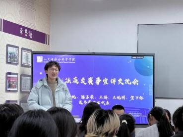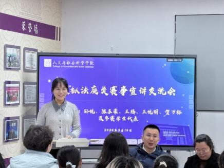法律系王腾、孙悦、贺万裕、王悦玥等指导老师逐一介绍了中国高校国际刑事法院模拟法庭竞赛(英文)、国际航空法模拟法庭比赛、“金陵杯”全国大员工模拟法庭竞赛、“安嘉杯”全国高校家事法模拟法庭大赛等多项赛事的赛事概况与比赛环节,为同学们明确了参与方向。在互动讨论环节,王腾分享了关于真实庭审的经验,强调了以真实庭审视角指导专业竞赛的重要作用;孙悦强调了模拟法庭赛事对于同学们专业素养的训练作用;贺万裕分析了“安嘉杯”的备赛要点;王悦玥从指导老师的角度分享了教赛相促的感悟。老师们表示,参与模拟法庭竞赛的价值不仅在于比赛成绩,更在于对大家逻辑思维、表达和团队协作能力的综合训练。